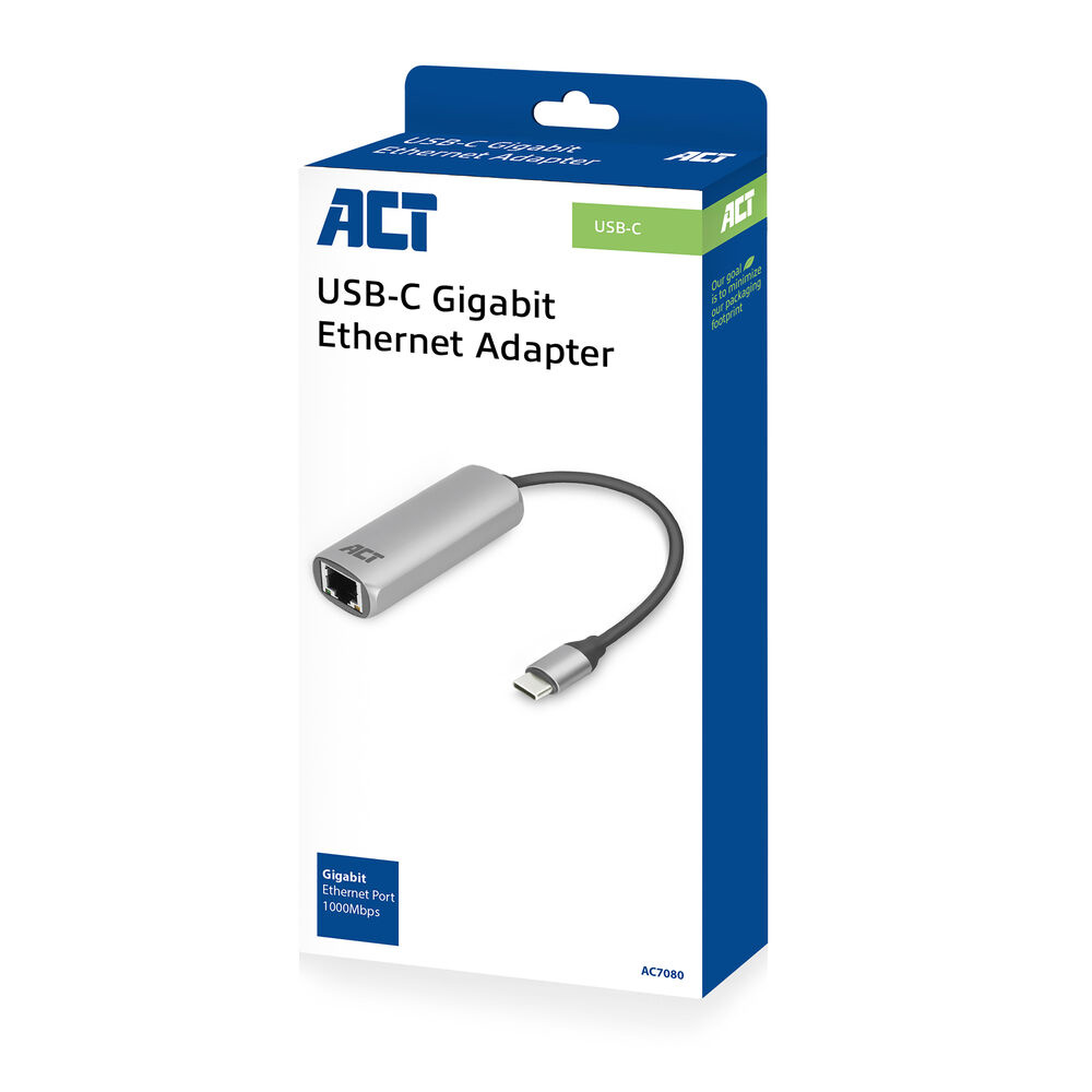 ACT AC7080 USB-C към Gigabit Ethernet адаптер, USB 3.2 Gen1, RJ45, 0.15 m, алуминиев корпус