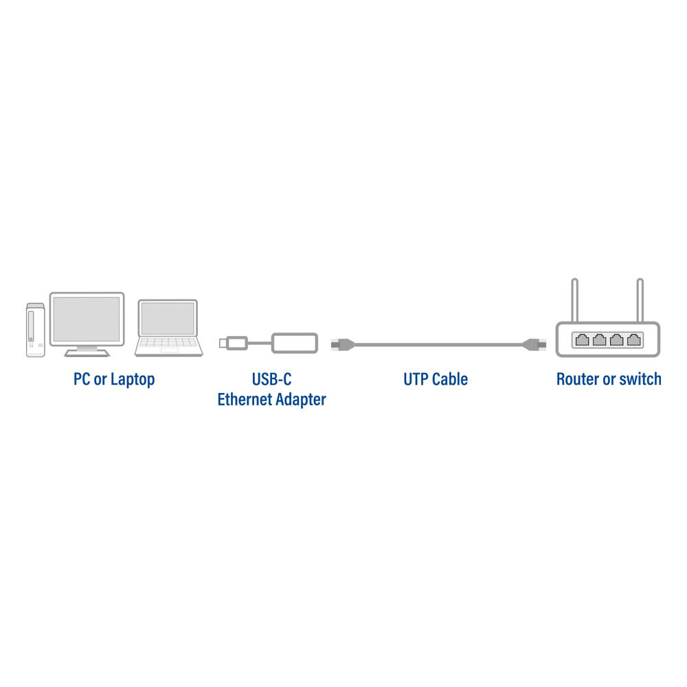 - Добавя Gigabit Ethernet порт към устройства с USB-C