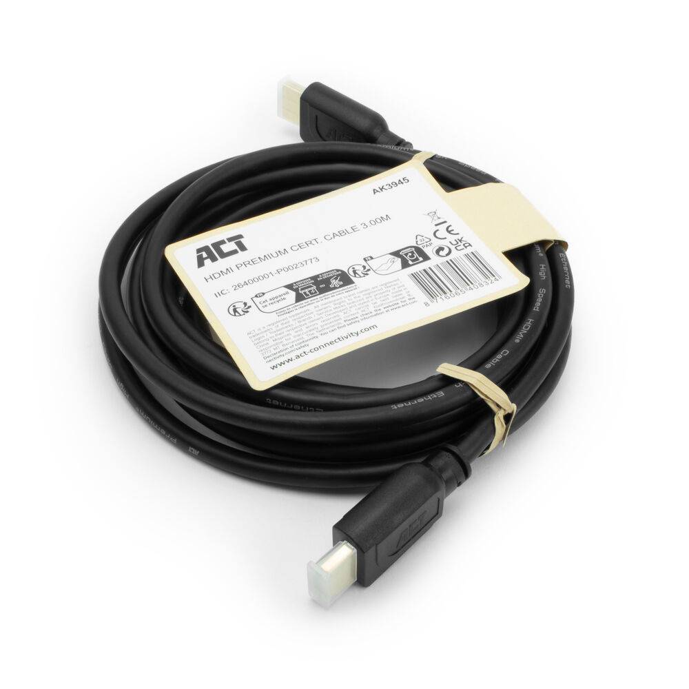 ACT AK3945 HDMI Premium сертифициран кабел, 3 м, 4K 60Hz, HDMI 2.0b