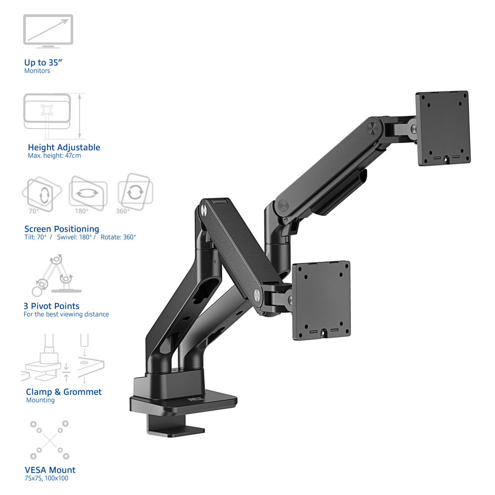 ACT Office Premium поставка за два монитора до 35", газов амортисьор