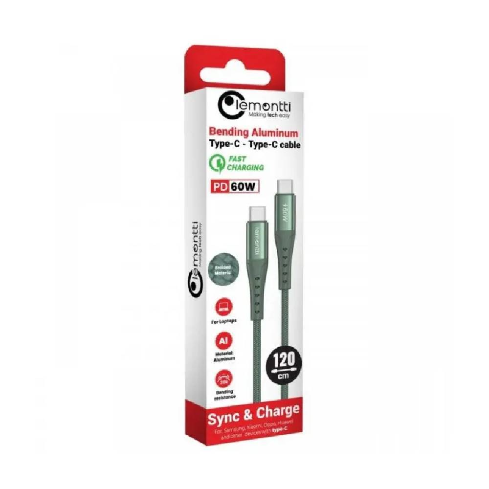 Кабелът Lemontti Bending Type-C към Type-C е създаден за бързо и надеждно зареждане на съвременни устройства с USB-C порт. С поддръжка на Power Delivery (PD) до 65W, той е подходящ за смартфони, таблети и лаптопи. Изработен с алуминиев корпус и здрава найлонова оплетка, кабелът осигурява отлична устойчивост на износване, огъване и ежедневно натоварване. Поддържа стабилен пренос на данни със скорост до 480 Mbps, което го прави практичен както за зареждане, така и за синхронизация. С дължина от 1.2 метра и стилен дизайн в зелен цвят, този кабел съчетава функционалност и модерен външен вид.