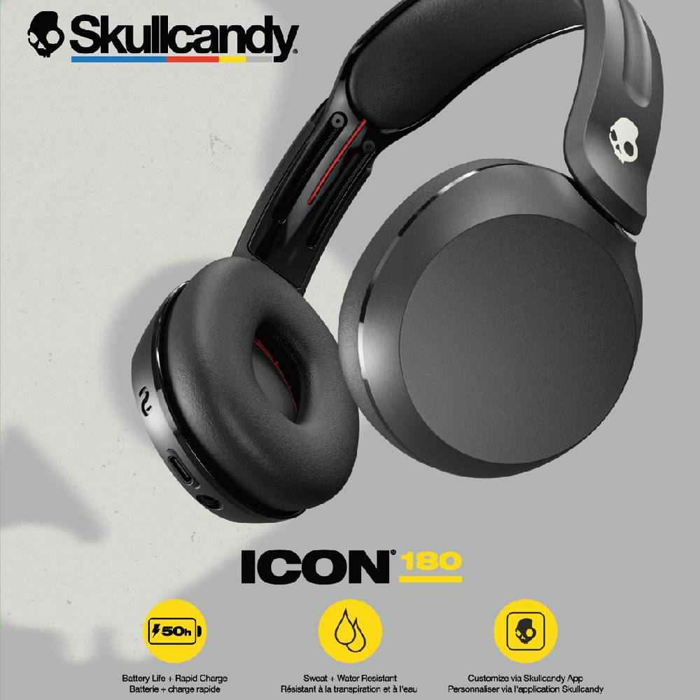 Етикети: Skullcandy, Icon®, 180, безжични, On-Ear, слушалки, черни