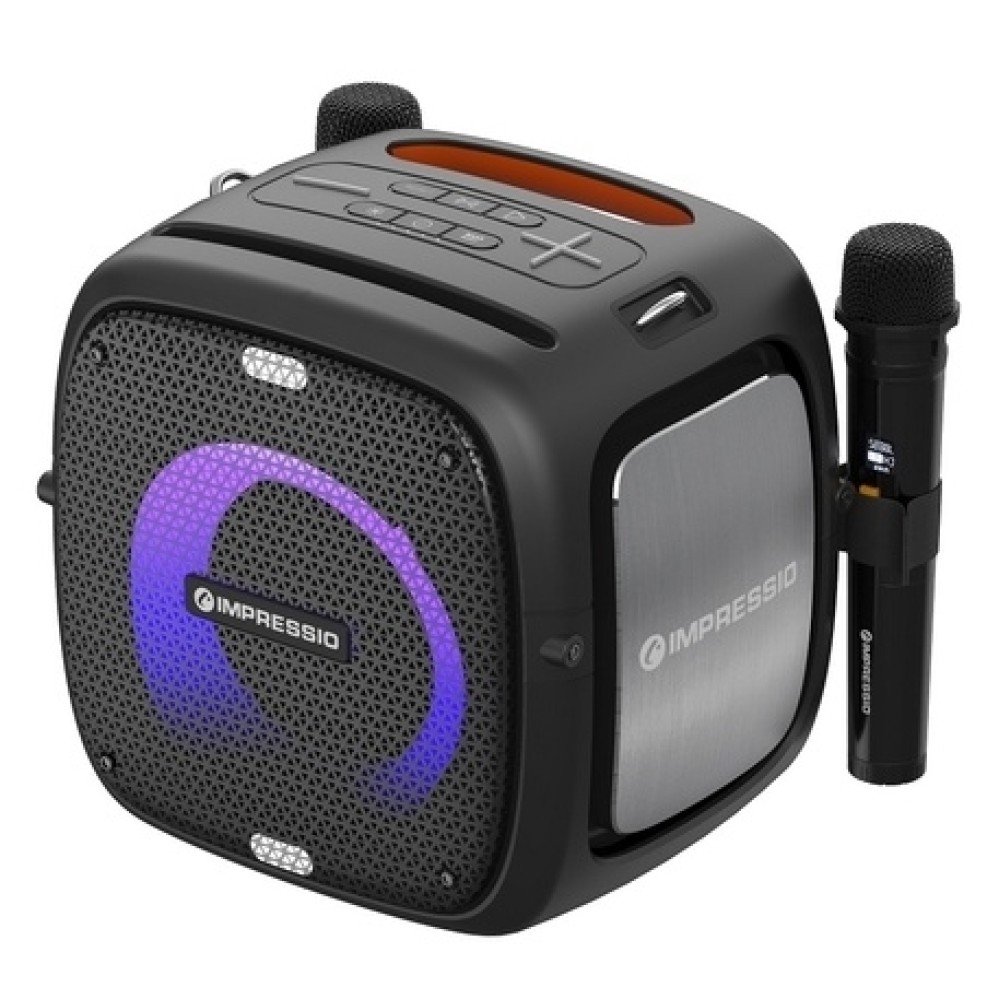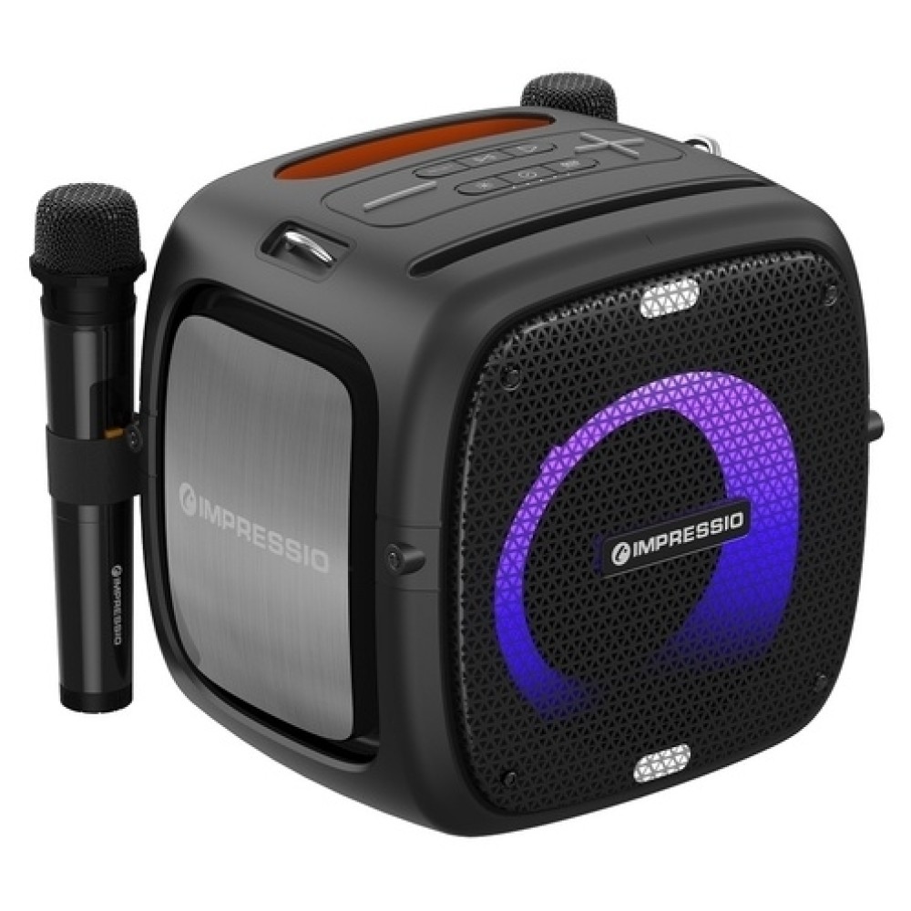Impressio Qubis се грижи и за вашите певчески изяви. В комплекта ще откриете два безжични микрофона с автоматично сдвояване. Това означава, че можете веднага да започнете да пеете, когато ви хрумне. Подгответе се за караоке парти с приятели и семейство и покажете своя талант!