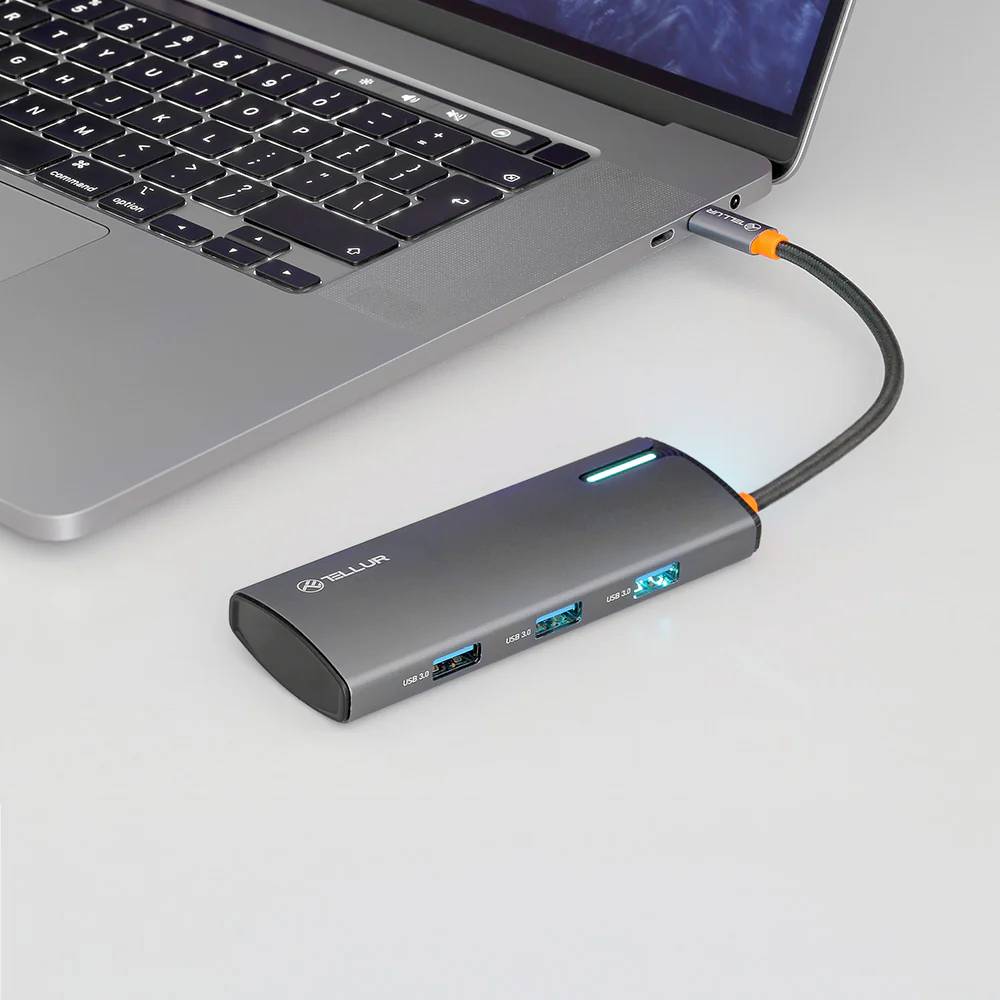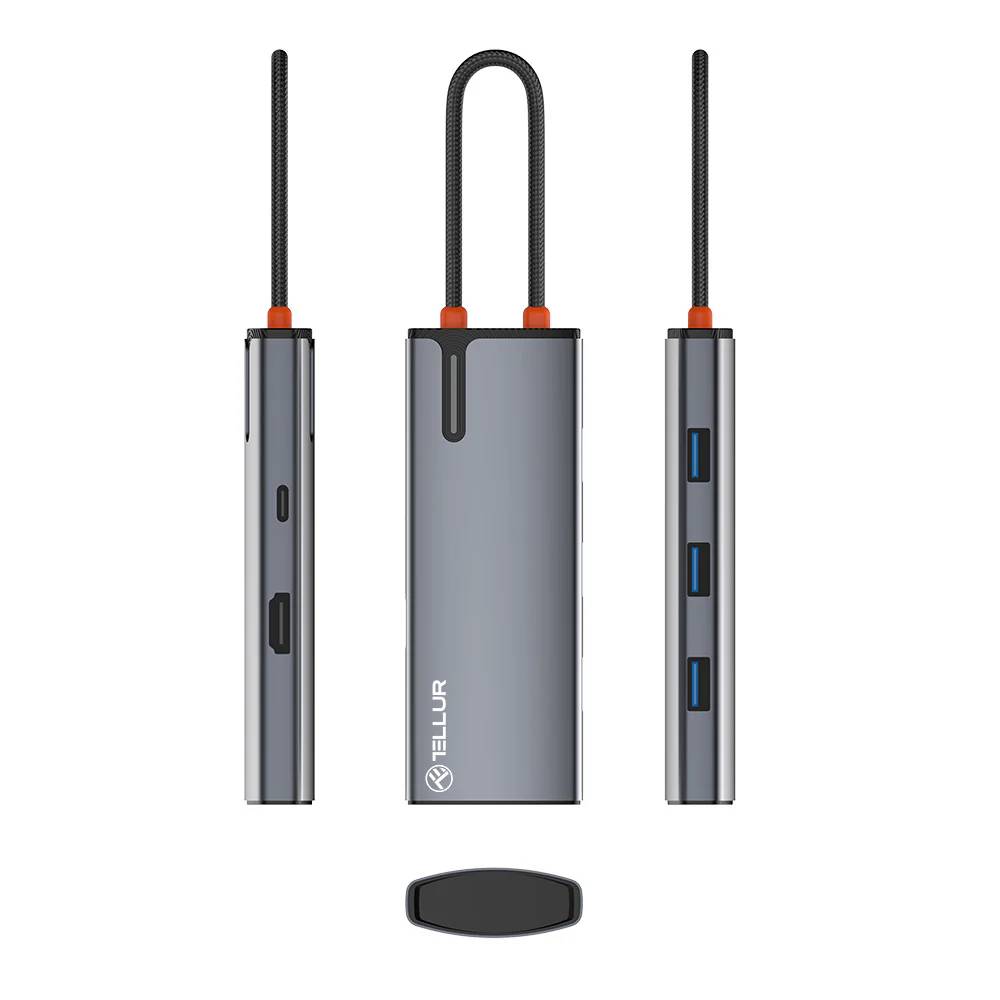 Tellur USB-C hub, 1xPD 3.0 100W, 1xHDMI 4K, 3xUSB 3.0, алуминий, сив